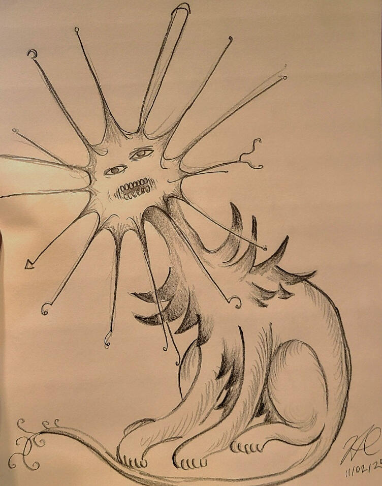I am extremely picky with the commissions I do. I encourage people to commission me if they're looking for something that I draw already ; monsters, horror, fantasy, cartoons, abstract drawings and goofy characters. If you are looking for someone to draw a family portrait for you, it won't be me, unless you let me draw everyone as cats. I'm just going to be real with you.